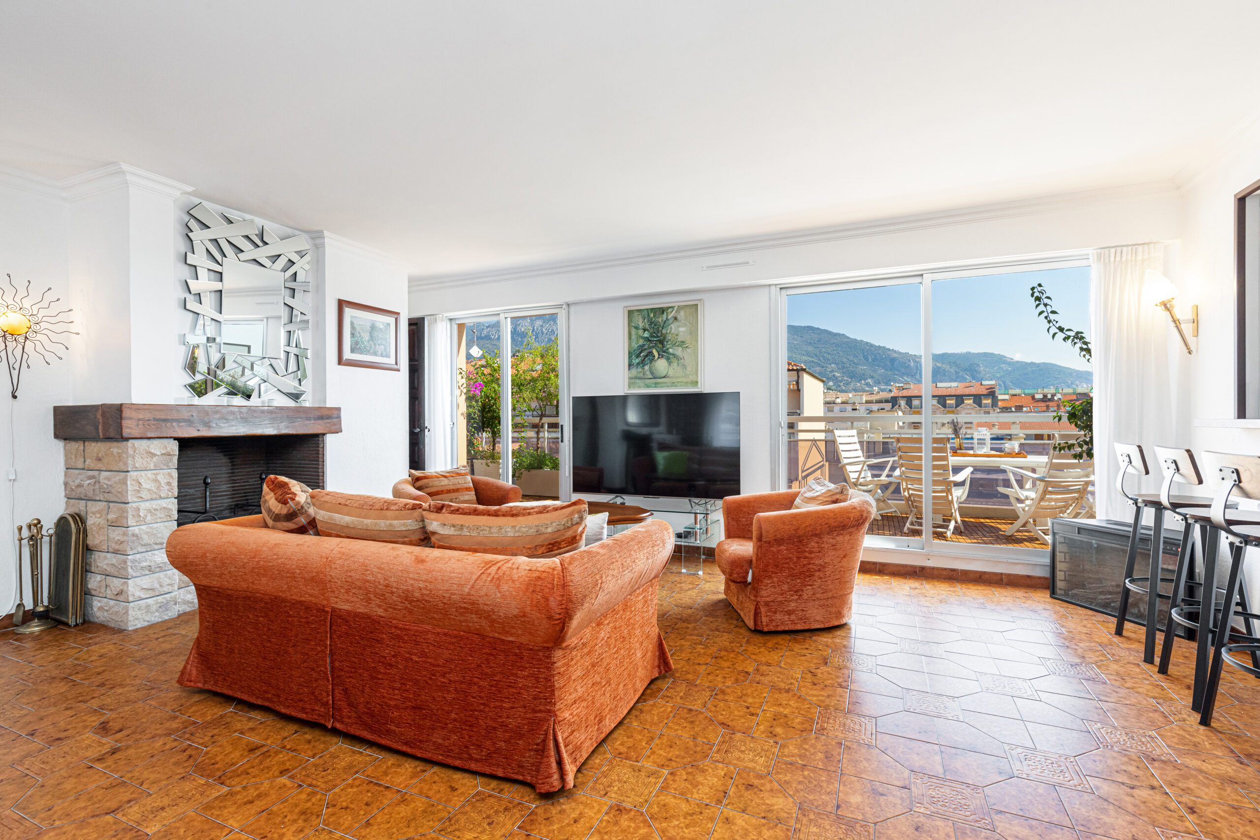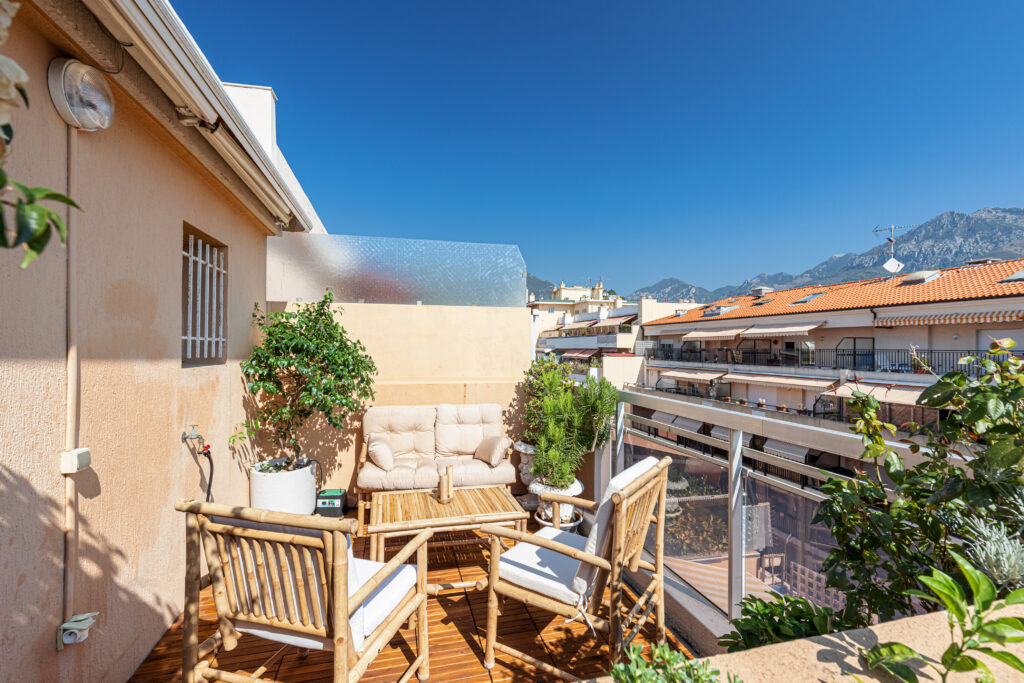 Profitez de terrasses avec vue sur les Alpes, d’un intérieur ergonomique alliant charme ancien et technologies modernes, et d’un havre de tranquillité au cœur de Menton.